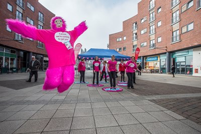 The determined group of women were joined by a pink gorilla for the ‘Cancer Slam’ at Eagles Meadow shopping centre in Wrexham to rally the troops for the Race for Life 5k event at Alyn Waters Country Park on Sunday June 8.