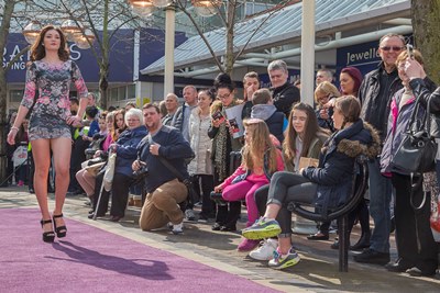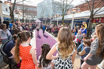 A troupe of 30 professional models and  cute children showcased the latest trends from the centre’s top fashion stores – including Next, River Island, H&M, Officers Club and Miss Selfridge – on a purple catwalk.