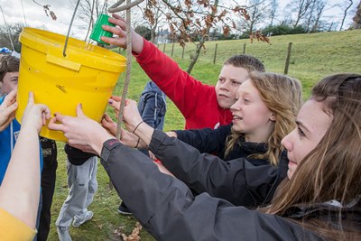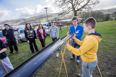 Among the problem solving activities the youngsters took part in was filling a bucket, pierced with holes, with water from Llyn Tegid, so a plastic duck inside could float. Activity leader Tom Lloyd allowed his team, made up of pupils from all three schools, to use cups, plus a plastic box to collect the lake water.